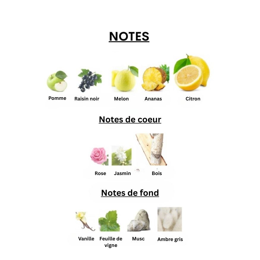 Notes de tête : Bergamote 🍋, citron 🍊, pomme 🍏