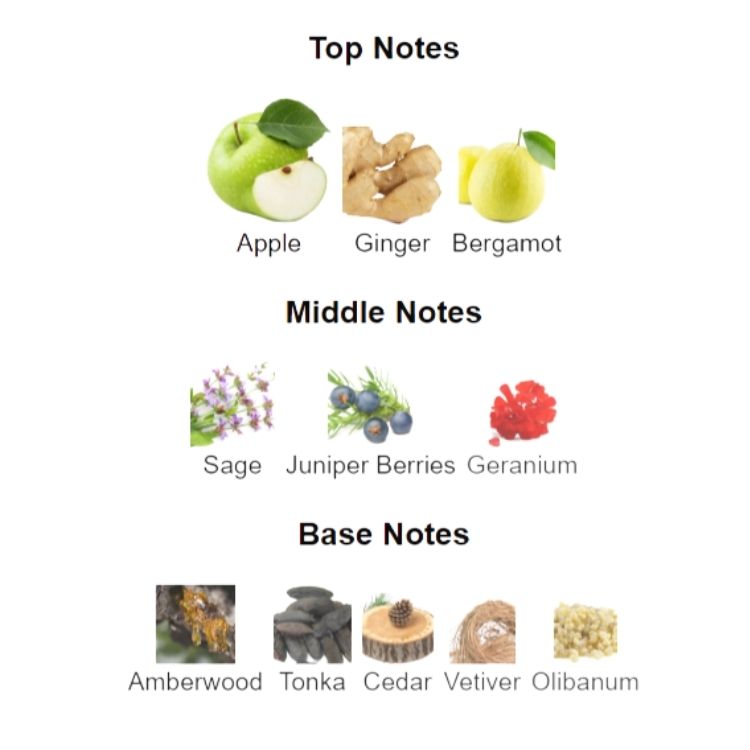 • Tête : Pomme 🍏, gingembre 🌶️, bergamote 🍋
