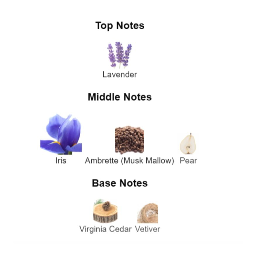 âą CĆur : Iris poudrĂ© đž, ambrette sensuelle đż, poire dĂ©licate đ