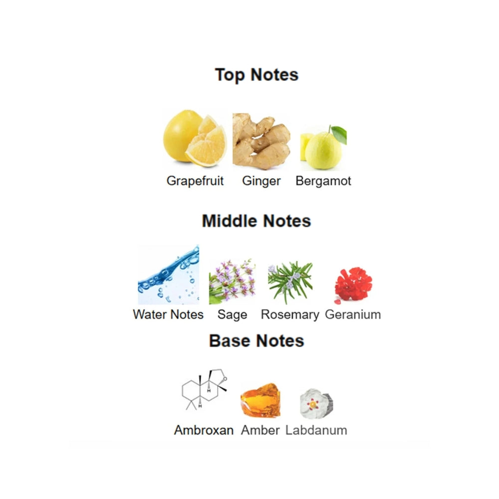 • Cœur : Notes aquatiques marines 🌊, romarin aromatique 🌿, sauge apaisante 🌱
