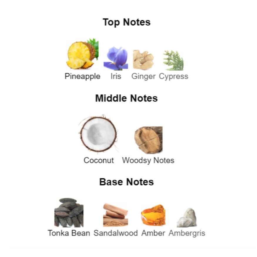 Un oriental boisé sensuel et audacieux, où la fraîcheur fruitée s’unit à une douceur exotique et une profondeur ambrée. Une signature magnétique et raffinée, pensée pour l’homme libre, charismatique et sûr de son élégance.
