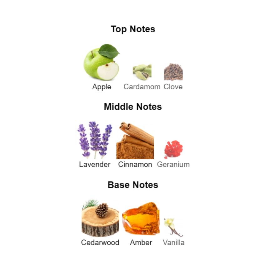 • Tête : Pomme croquante 🍏, cardamome épicée 🌿, clou de girofle intense 🌶️