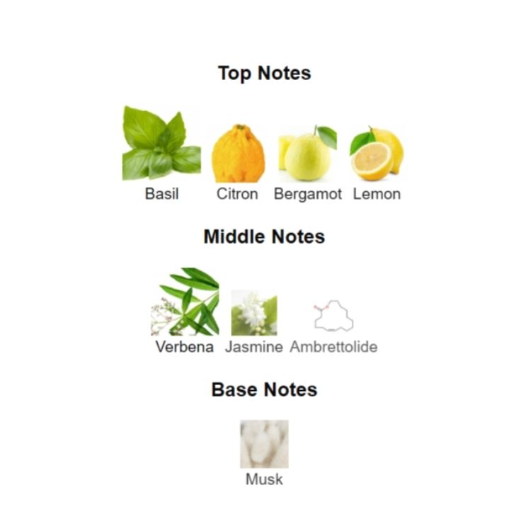 âą TĂȘte : Basilic đż, cĂ©drat đ, bergamote đ, citron đ